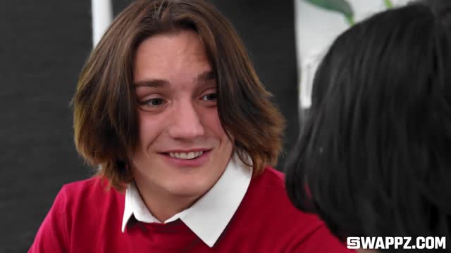 Blonde cutie Rachael Cavalli sits on her boyfriend's son's hard cock